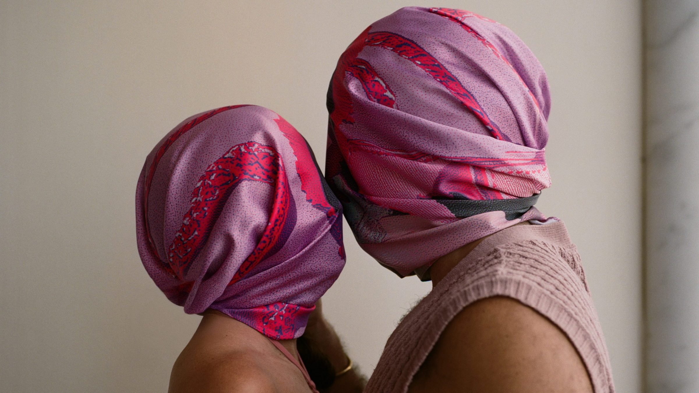 The cover of Balagan — without text, translated into silk. A tender rebellion in fabric. Its pinks and violets shift with the light – sometimes calm, sometimes wild. Tied over hair, around the neck, or across the shoulders, it becomes a language of softness and strength.